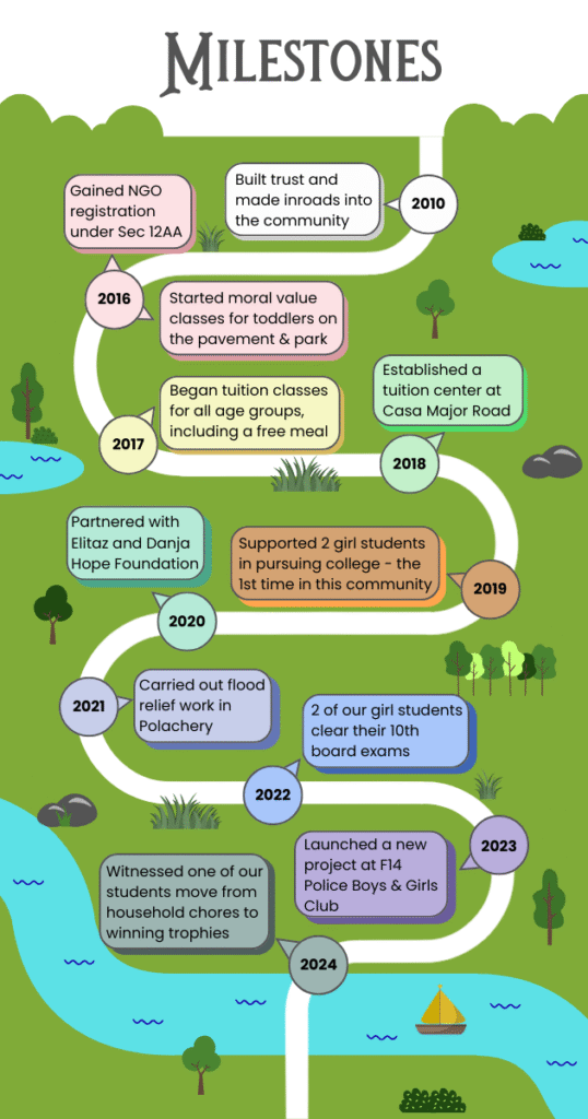 We currently provide education for 55 children through after-school care and special tuitions within the community.